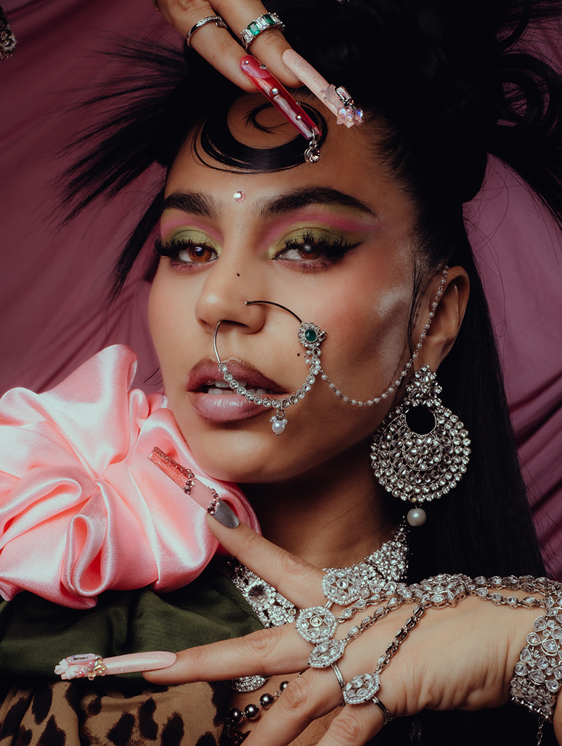 Born Shanta Venkatesh, with roots in both India and Switzerland, the genre-blending artist began making music as a teenager. "I grew up listening to R&B and hip-hop since I was 9 or 10," she says behind wide auburn sunglasses. "I got this little booklet with all of these CDs of my favorite artists, like Tupac, Biggie, and Aaliyah…I was obsessed with it." At the time, MTV was "such a big thing, as well," as she points out, and BombayMami immersed herself in American pop culture. "It never seemed like it could be happening, even…the dream about doing music, or anything when it comes to art," she says.